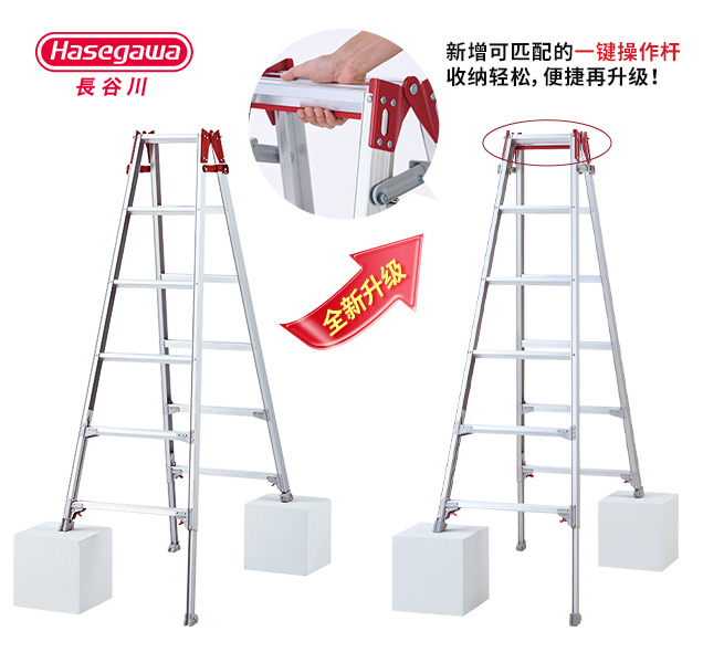 L形关节折叠式锁扣加固使用时的稳定性同时轻松帮助完成人字梯到直梯直梯的切换。(注:*-09~21为人字梯兼直梯;*-24~30为仅为专用人字梯)