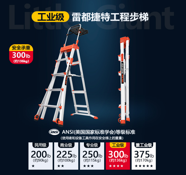 通过美国ANSI针对工业梯具安全检测标准的工业级别136kg(300lb)认证