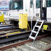 检修车辆时的搭乘作业台。增设扶手防止上下车辆及作业时跌落,特制的安全作业平台。