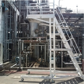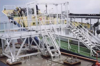 为配合停泊船只的移动,台阶和通道可以上下左右滑动,工人能够安全上下作业。