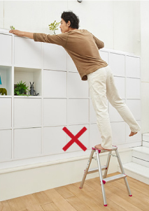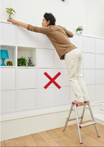 - 在梯子上进行作业时,请站在从天板开始数第三节(210cm以下的型号则为第二节)以下的踏板上,身体轻靠天板和上层踏板,在平稳的状态下操作。
