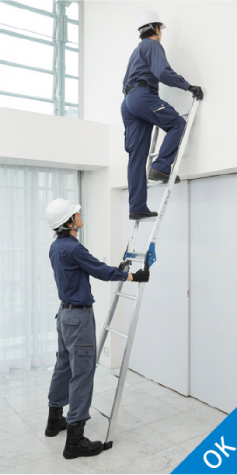 - 将梯子倚靠屋顶等场所时,梯子和建筑物的最佳接触点为踏板从上往下数第2~3级的位置。