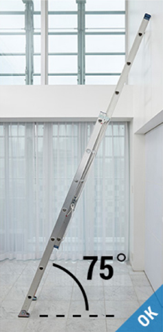 - 梯子的倚靠角度约为75度。请务必在有人辅助扶稳梯子的情况下作业。
